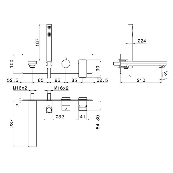 Смеситель Newform B-Easy 72672E.21.018 для ванны с переключателем на 2 потока , хром глянец