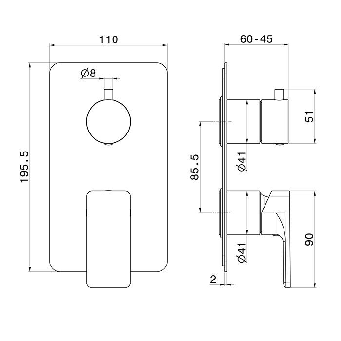 Смеситель Newform B-Easy 72674E.01.093 для душа с переключателем на 2 потока, черный матовый