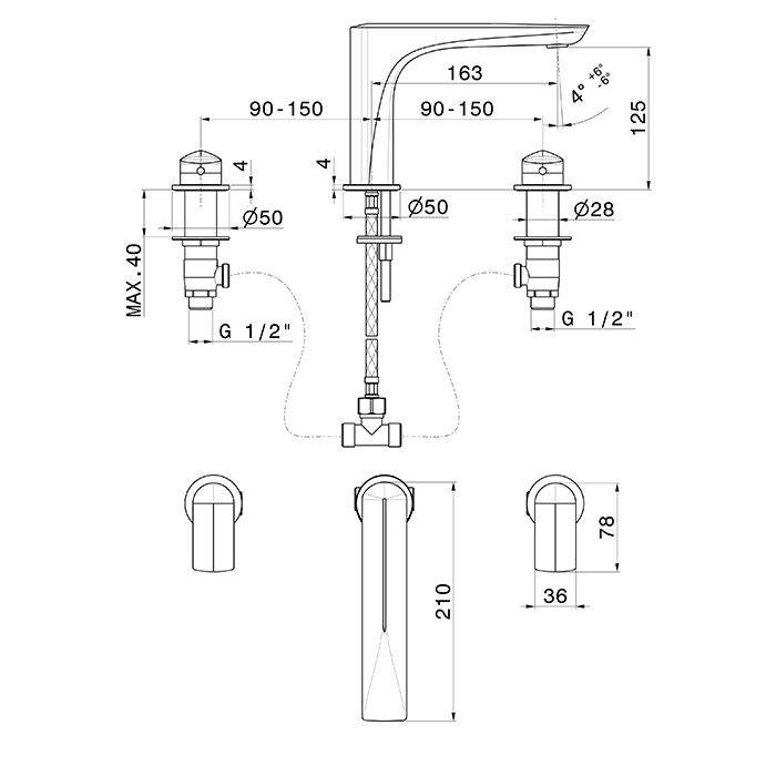 Смеситель Newform Delta Zero 72200.58.063 для раковины, оружейная сталь глянец PVD