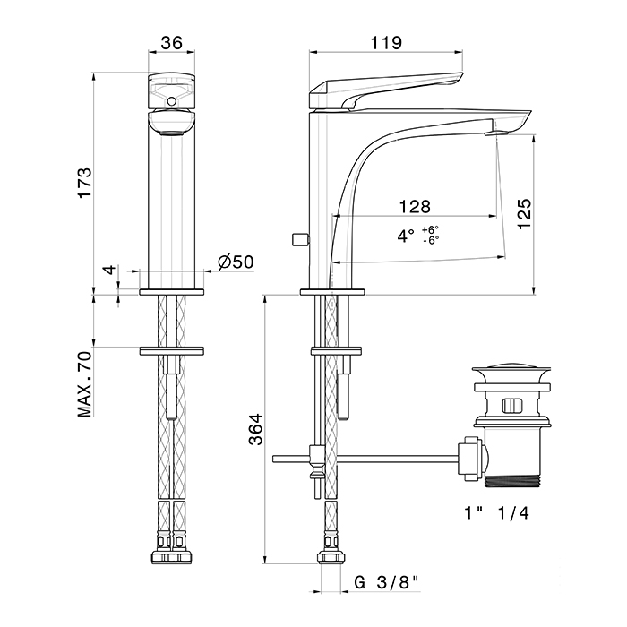 Смеситель Newform Delta Zero 72210.58.061 для раковины с донным клапаном, медь глянец PVD