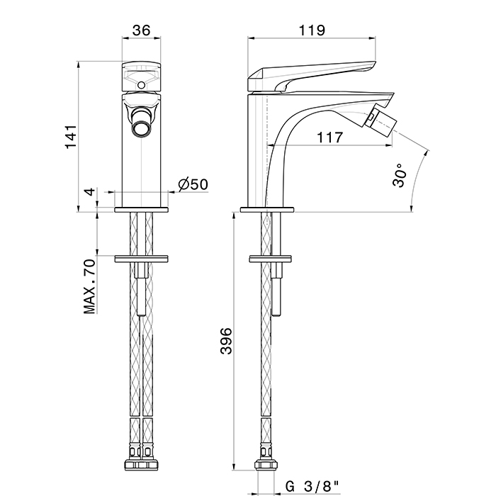 Смеситель Newform Delta Zero 72227.58.061 для биде, медь глянец PVD