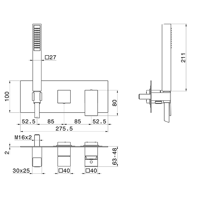 Смеситель Newform Ergo Q 66469E.21.018 для душа с переключателем на 2 потока, хром глянец