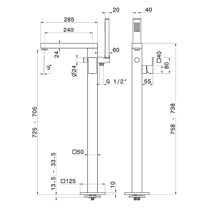 Смеситель Newform Ergo Q 66484E.21.018 для ванны напольный, хром глянец