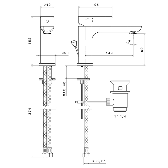 Смеситель Newform Extro 69309.21.018 для раковины с донным клапаном, хром глянец