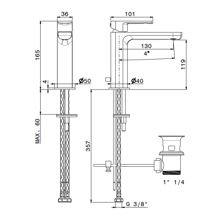 Смеситель Newform Haka 72010.01.014 для раковины с донным клапаном, белый матовый
