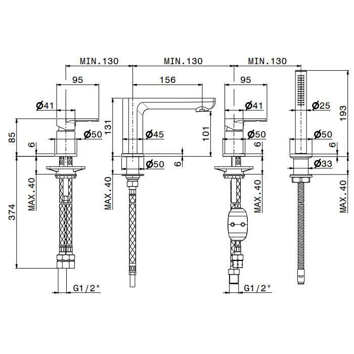 Смеситель Newform Haka 72082C.01.014 на борт ванны, белый матовый