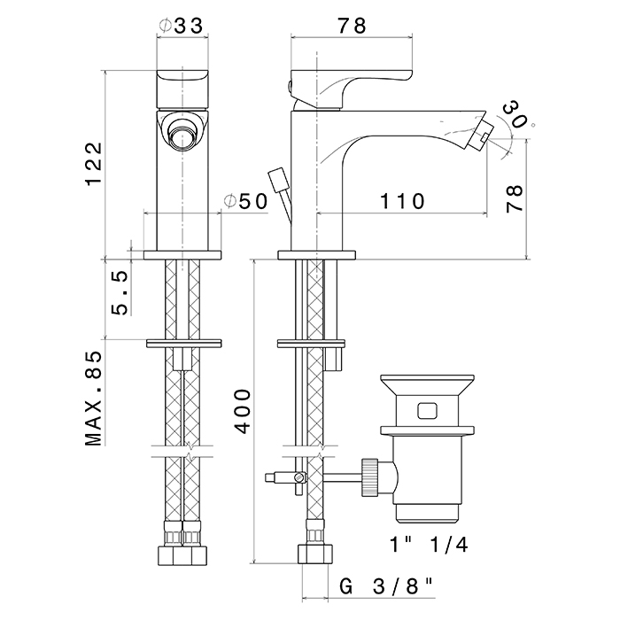Смеситель Newform Linfa II 69425.01.014 для биде с донным клапаном, белый матовый