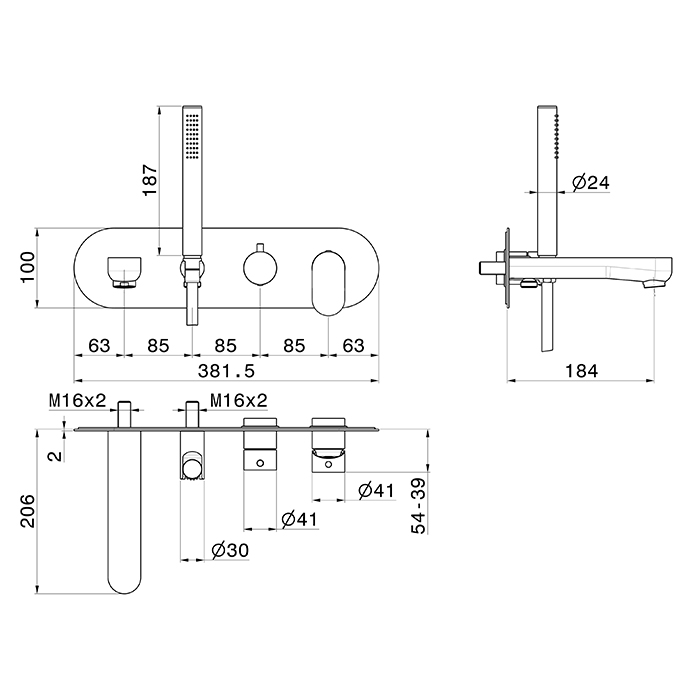 Смеситель Newform Linfa II 69472E.21.018 для ванны с переключателем на 2 потока, хром глянец