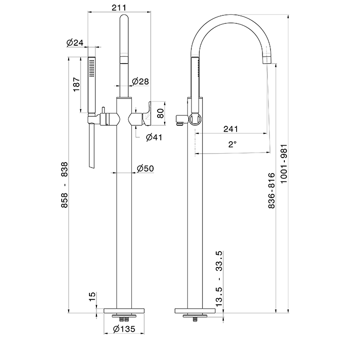 Смеситель Newform Linfa II 69484E.21.018 для ванны напольный, хром глянец