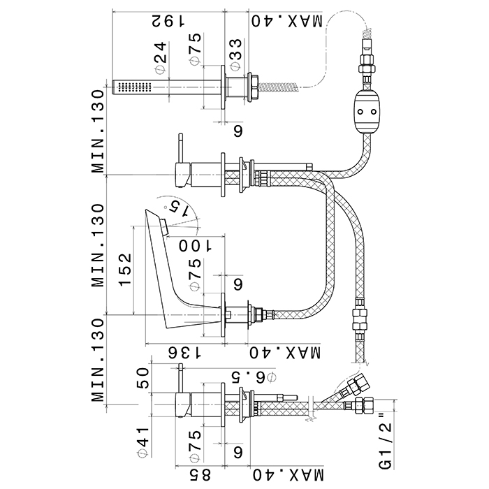 Излив Newform Haka 72091.01.093 на борт ванны, черный матовый