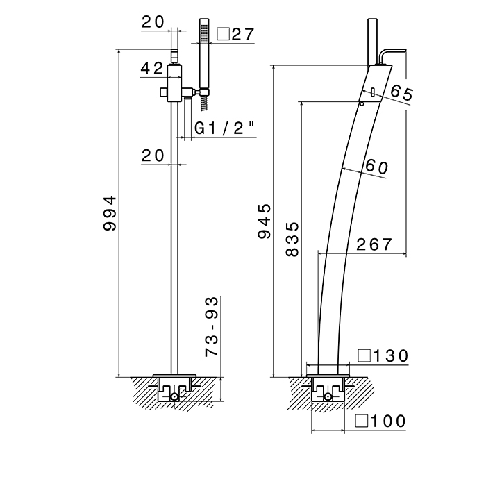Смеситель Newform Outdoor 62289EX.50.050 для ванны напольный, нержавеющая сталь браш