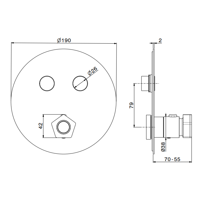 Смеситель Newform ParkLE 70439E.05.093 для душа термостат с переключателем на 2 потока, хром / черный матовый