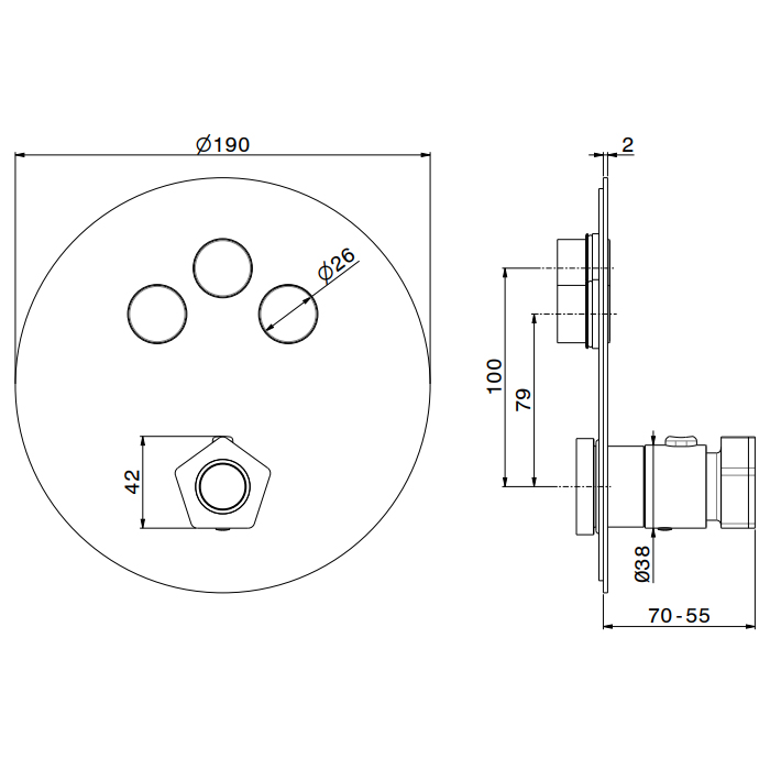 Смеситель Newform ParkLE 70440E.05.093 для душа термостат с переключателем на 3 потока, хром / черный матовый