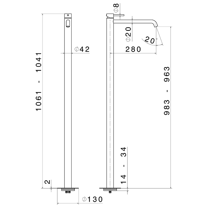 Смеситель Newform X-Steel 316 69618EX.59.097 для раковины напольный, золото браш PVD