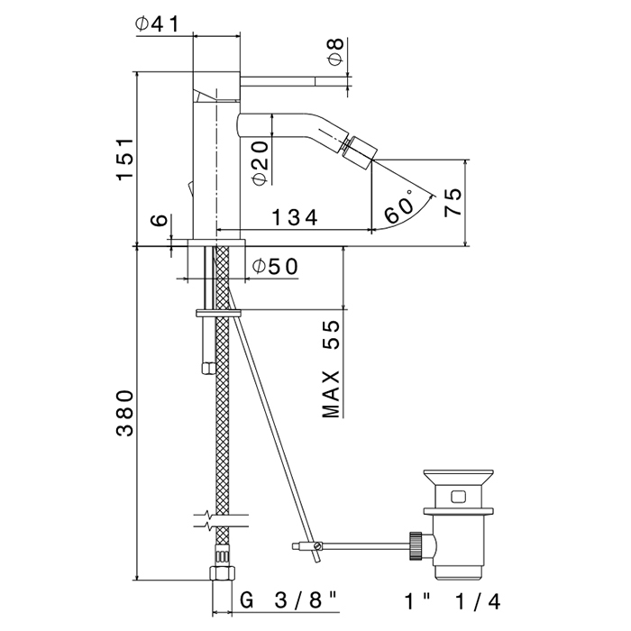 Смеситель Newform X-Steel 316 69623X.59.064 для биде с донным клапаном, оружейная сталь браш PVD