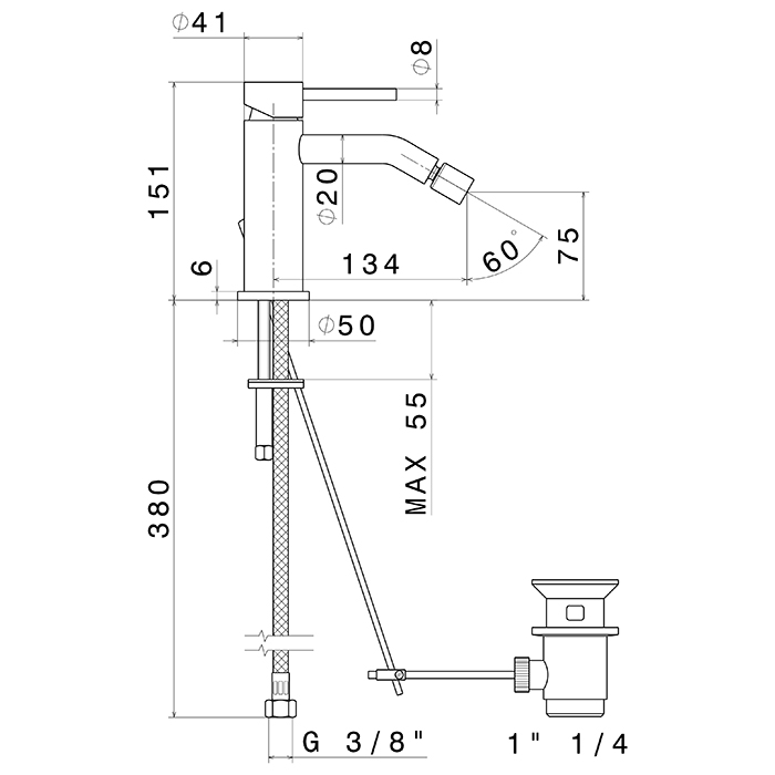 Смеситель Newform X-Steel 316 69623X.59.097 для биде с донным клапаном, золото браш PVD