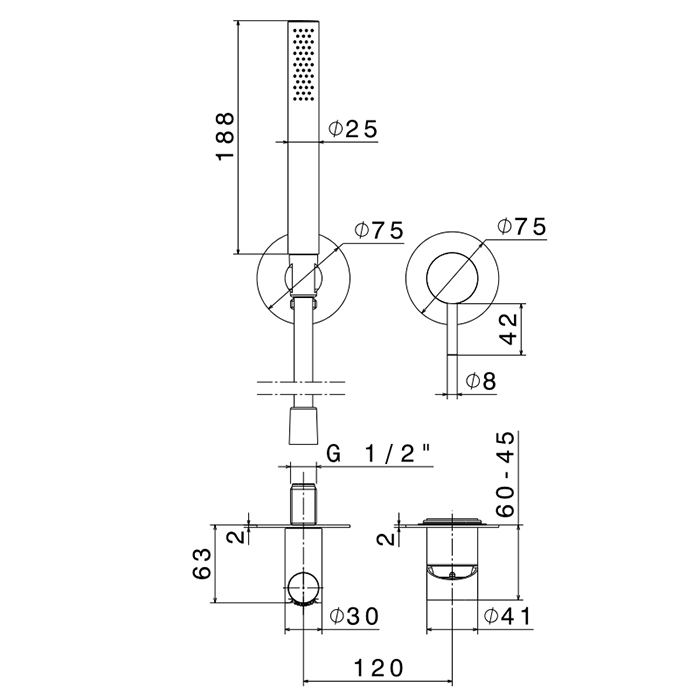 Смеситель Newform X-Steel 316 69676EX.50.050 для душа, нержавеющая сталь браш