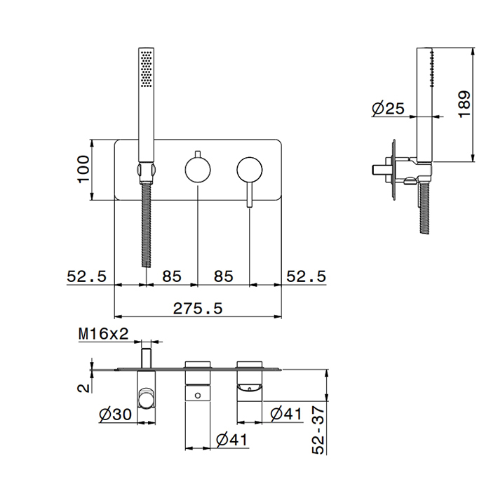 Смеситель Newform X-Steel 316 69679EX.50.050 для душа с переключателем на 2 потока, нержавеющая сталь браш