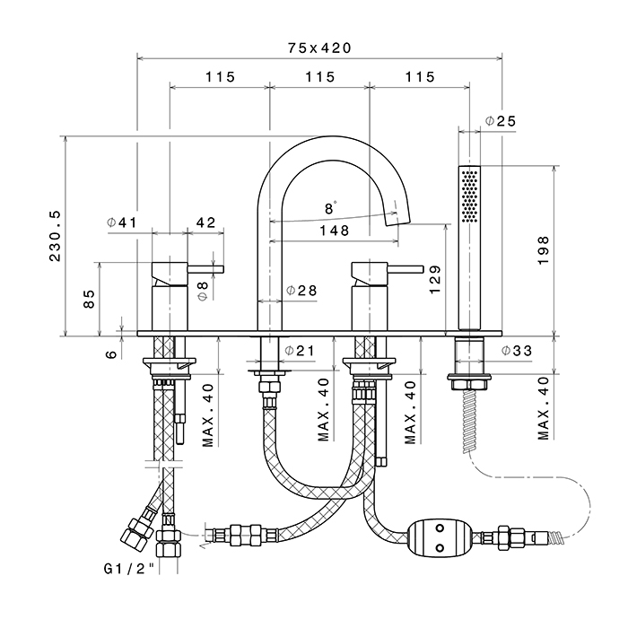 Смеситель Newform X-Steel 316 69689XC.50.050 на борт ванны, нержавеющая сталь браш