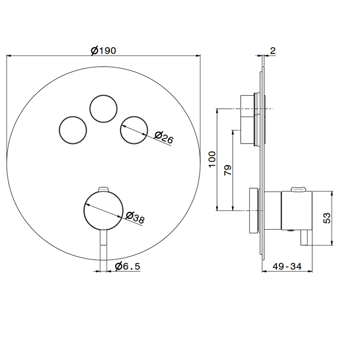 Смеситель Newform X-Steel 316 70427EX.50.050 для душа термостат с кнопками на 3 потока, нержавеющая сталь браш