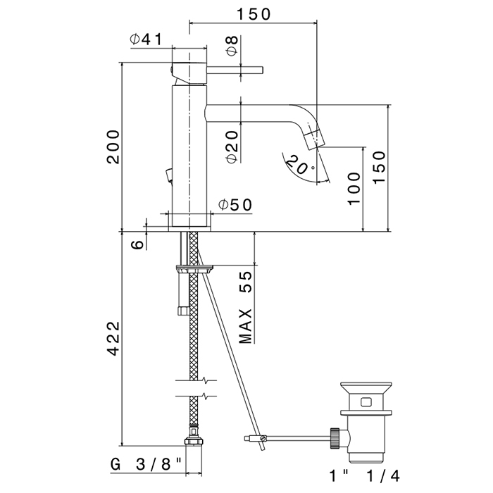 Смеситель Newform XT 4201.21.018 для раковины с донным клапаном, хром глянец