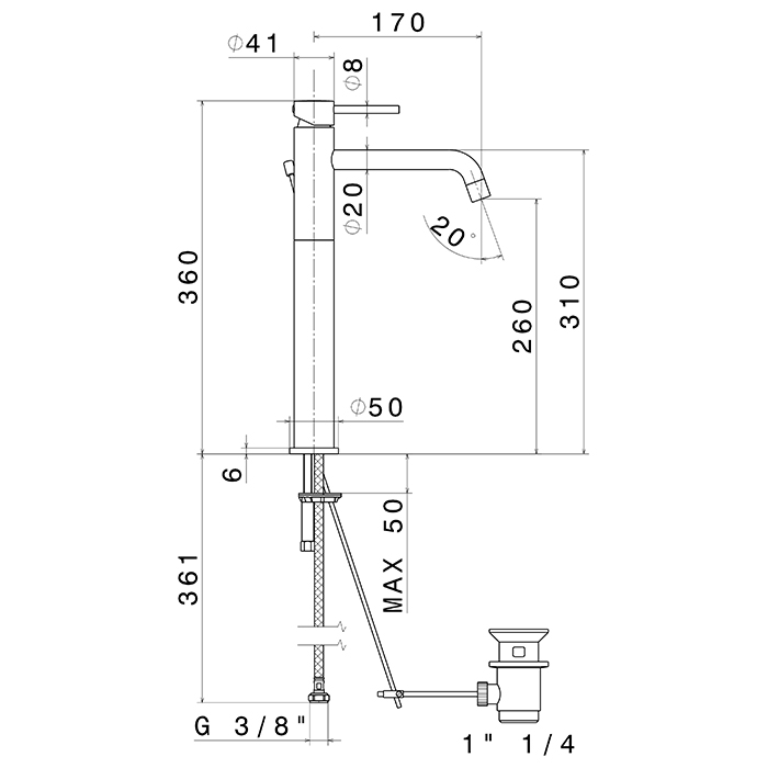 Смеситель Newform XT 4204.01.093 для раковины с донным клапаном, черный матовый