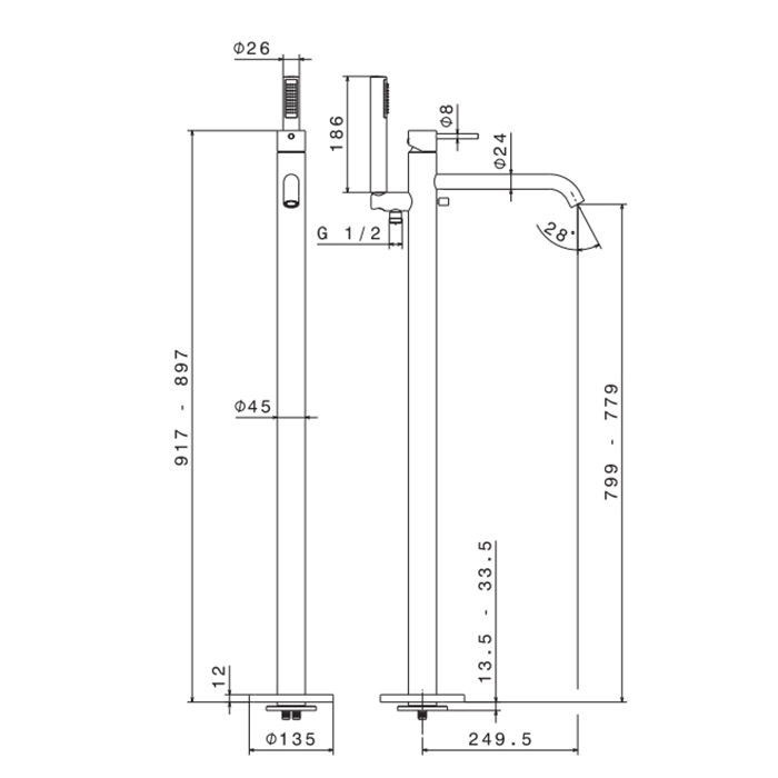 Смеситель Newform XT 4278E.21.018 для ванны напольный, хром глянец