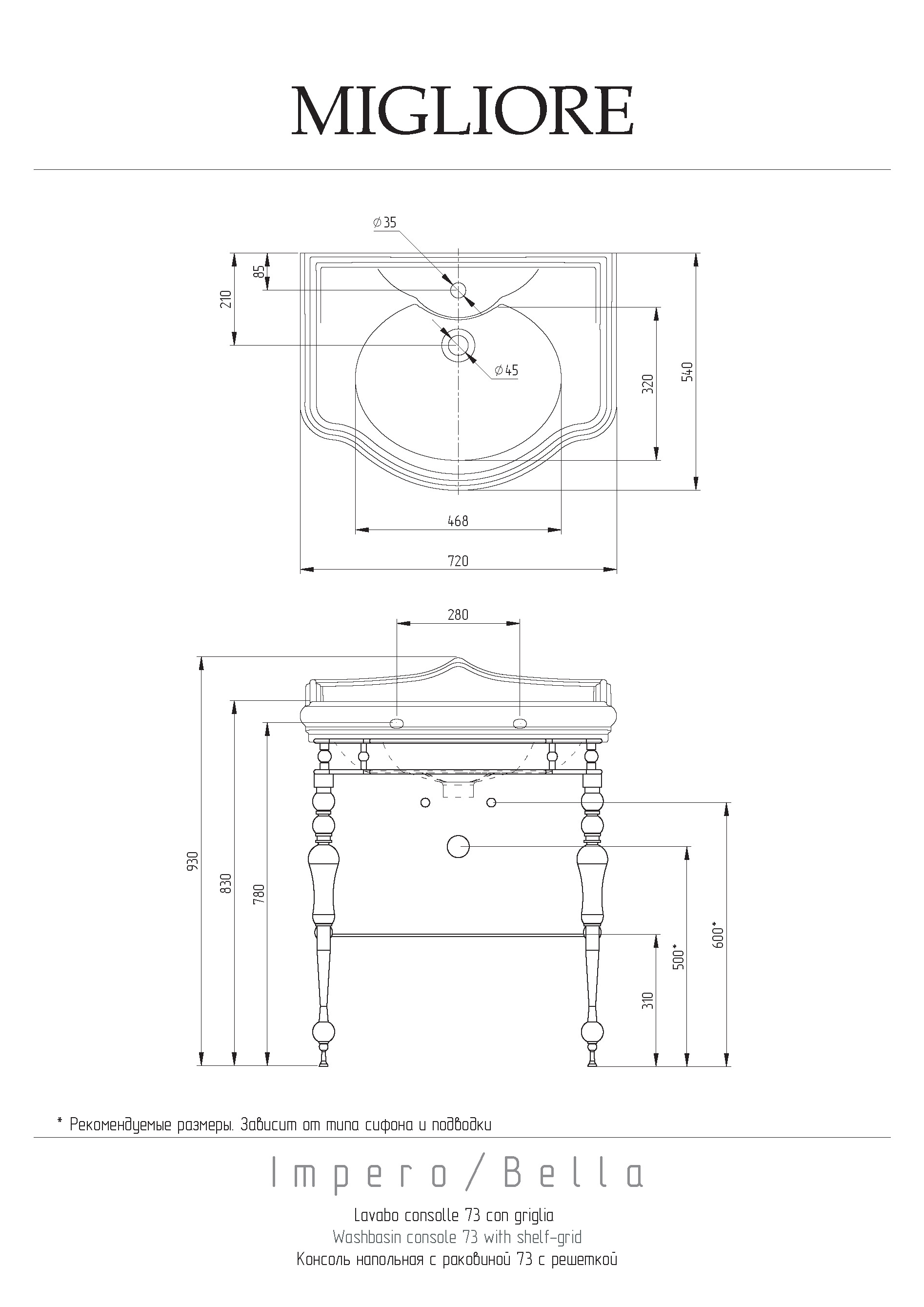 Раковина консоль Migliore Bella 31193 золото 73 см