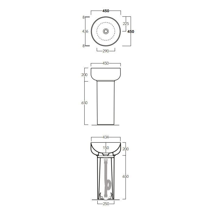 SIMAS Сливной шланг в пол с керамическим донным клапаном для раковины-пьедестала BA01/CN301 - BA03/CN401