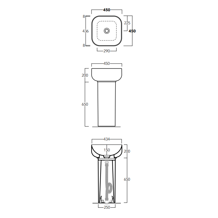 Simas Balloon Колонна под раковину квадратная 27,5xh65 см (слив в пол), цвет белый (без креплений F91 и комплекта SIFBA)