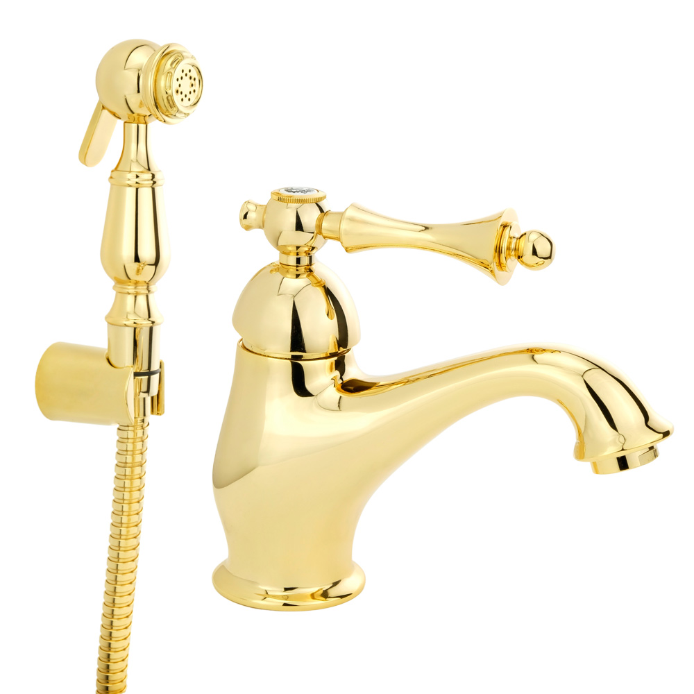 Смеситель для раковины Migliore Bomond 26887 с гигиеническим душем золото