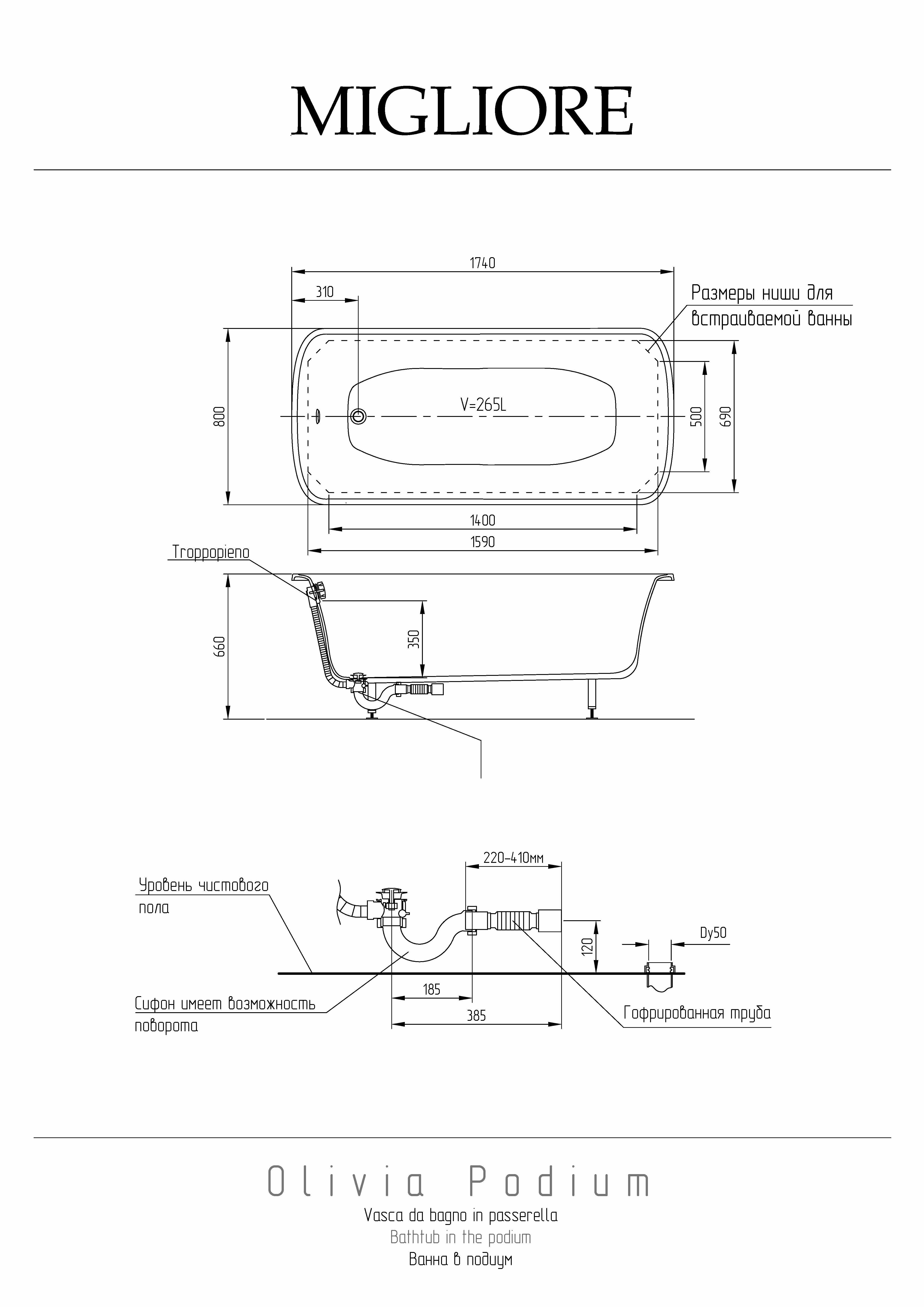 Ванна Migliore Olivia Podium 24379 встраиваемая 174х80 см, золото